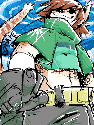 Oh heck! I guess I was trying to be sort of stylistic or meaningful? This is amazing to me, because Hate is sporting her "recent" design changes, a la stripes. I don't know why she's pretending to not like DJ here and crossing her fingers. I think she actually doesn't like DJ LOL. Anyway, muddy colors and a weird belly shirt.