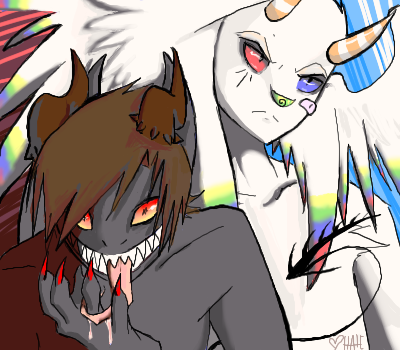 Hold on, these are out of order!! This was number #2088 on the board, while the "last" pic was well into the 19,000's. I hecked up the order, oh well. Enjoy this amazingly unfinished edgy pic of demon Hate and my human puppet Edward.